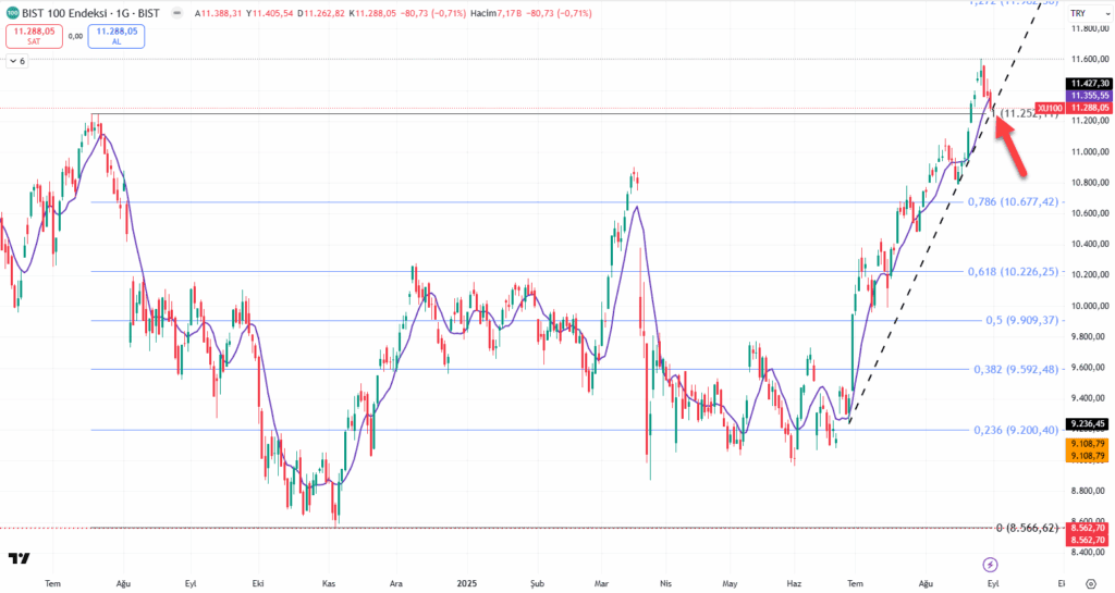 Herkese merhaba! Yaklaşık 2 aylık trendimizin sonunda üzerine attığımız 2024 Temmuz zirvesi olan 11252 seviyesinin kırılmaması çok önemli! Çarşamba’dan gelen satışlar eski zirveyi re-test edip yukarı hareketi devam mı ettirecek yoksa 11252 üzerindeki hareketi tuzak bırakıp geri mi döneceğiz, takip edeceğiz. Satışın ise kredi kullanan yatırımcıların özkaynak oranının %20 den %35 e çıkartılması ve bunun Pazartesi’den itibaren geçerli olacağının belirtilmesi olduğu söylenmekte.