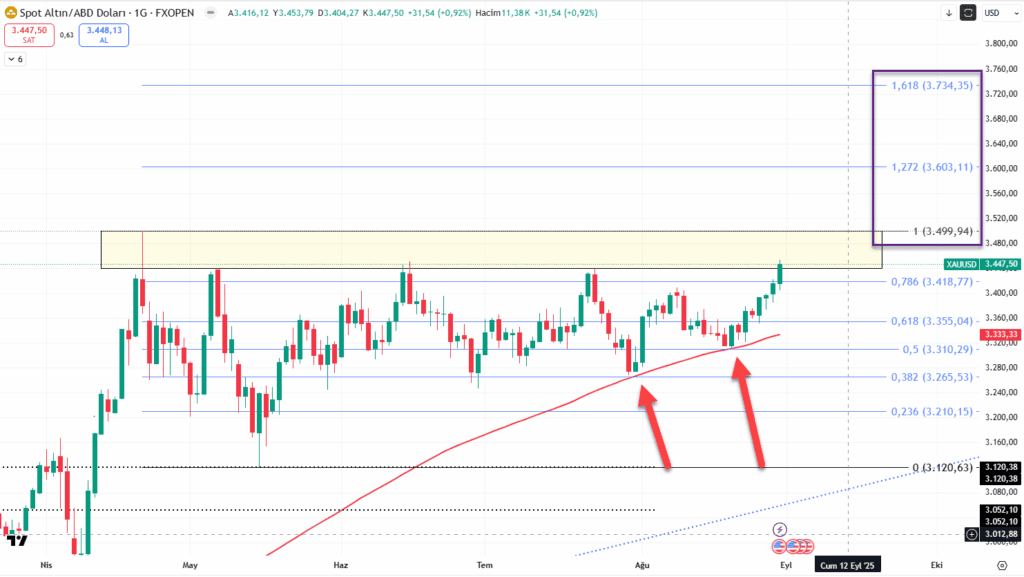 Altında 3265-3440 bandının üzerinde 3447 ile kapanış rekoru geldi! Daha önce de altın özelinde onuştuğumuz 100 günlük ortalama işini iyi yapmışa benziyor. 3440$ üzerinde sıralı hedeflerimiz ise 3500–3603–3734$ seviyeleri. 3440–3418–3384(8 günlük ortalama) ise desteklerimiz.