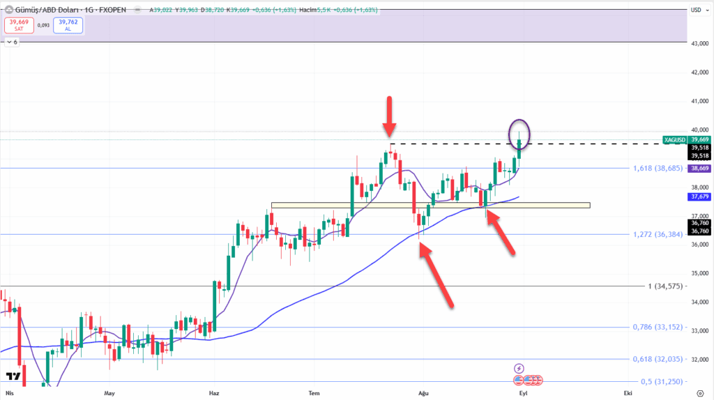 Yine 50 günlük ortalama desteğinden gelen alımlarla hareketine devam eden gümüş kısa vadeli gördüğü zirve seviyesinin üzerinde bu dönemin rekor seviyesinde(39.667$) kapanış aldı. 38.7$ seviyesi üzerinde kalıcılık çok önemli. 39.5$ seviyesi üzerinde 40/43$ seviyelerine doğru(39.96$ görüldü zaten) hareketi takip ediyor olacağız.