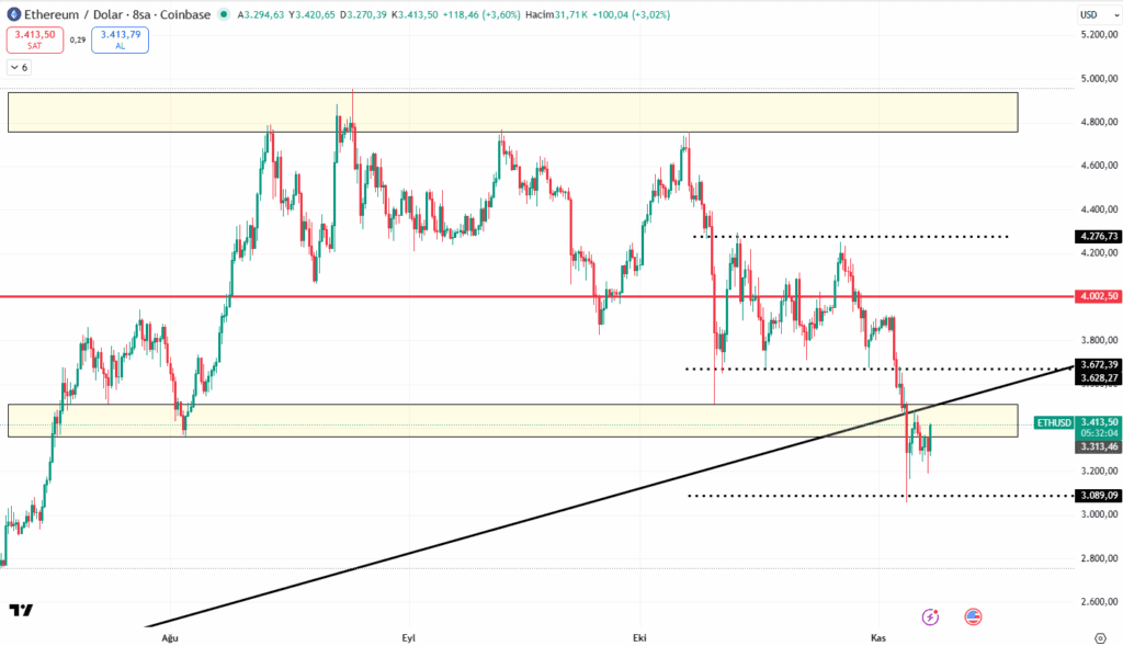 Güncel görünüm böyle. Söylediğimiz seviyelere gelmiş gibi görünüyoruz. 98500 seviyesi stop olmak üzere 100bin üzerinde kaldığı sürece bir miktar Bitcoin daha önce almamış yatırımcılar için denenebilecek bir seviye. Alttan gelen kesikli yükselen trendin altına kaymalar da bize 98500’ün aşağı kırılımını gösterir ki bu da stop olmak için yeterli bir sebep olacaktır.