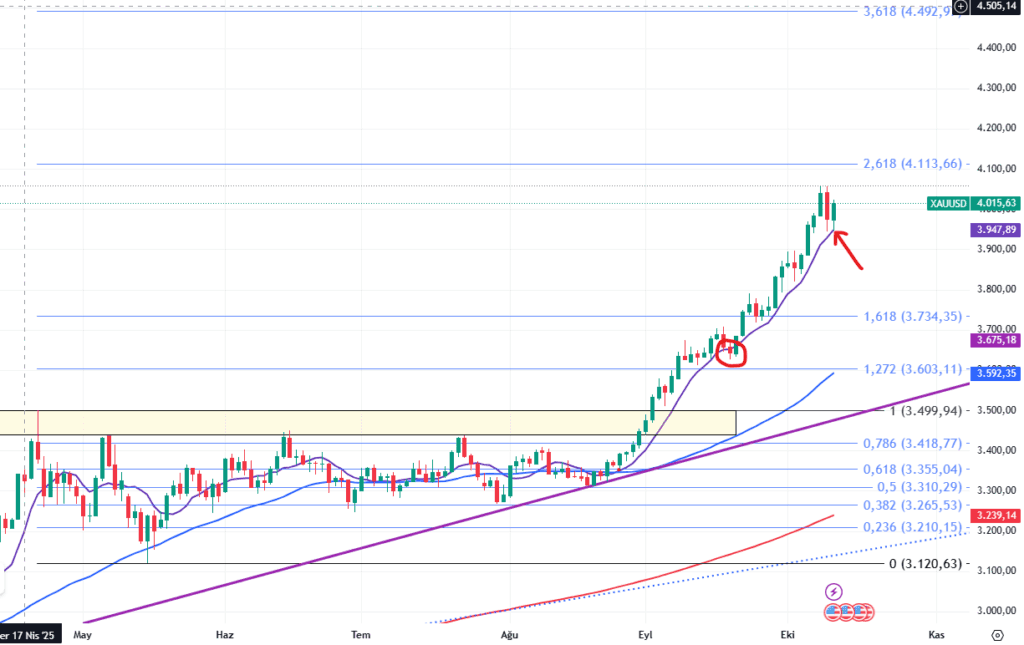 Cuma günü 3947$’da olan 8 günlükten aldığı destekle kapatan altında yine bu ortalamayı takip edeceğim.