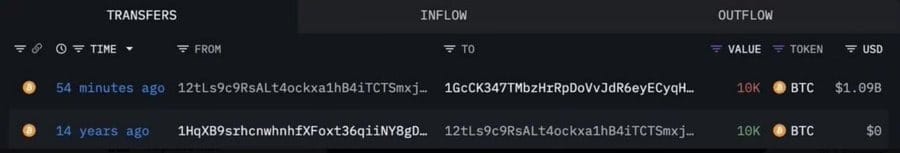 • 14 yıl boyunca hiç dokunulmayan 10.000 BTC’lik bir cüzdan, bugün 1,1 milyar dolar değerinde hareket etti.