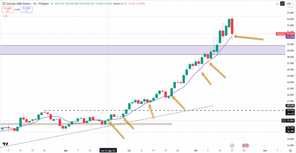 2. grafikte ise yine 8 günlük ortalama altına bir kayışla beraber üzerinde kapanışla biten bir haftayı geride bıraktık. Bu grafikte de 38’den beri 8’in altında 3 gün geçirmeden devam etmekteyiz.