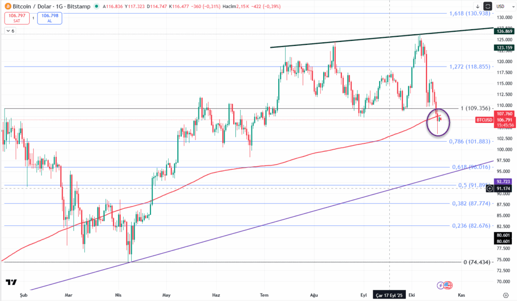 Şaka maka haftalar öncesinde belirttiğimiz 200 günlük ortalamanın altına kayarak uzun vadeli toplamaya başlama evresine yaklaşmaktayız. 127binden 103binlere kadar geriledik ve 105.000 üzerinde yeni bir güç toplama denemesi yapılıyor ancak yukarı hareket için ivedi bir şekilde 200 günlük ortalama üzerine atmalıyız.(107.760)