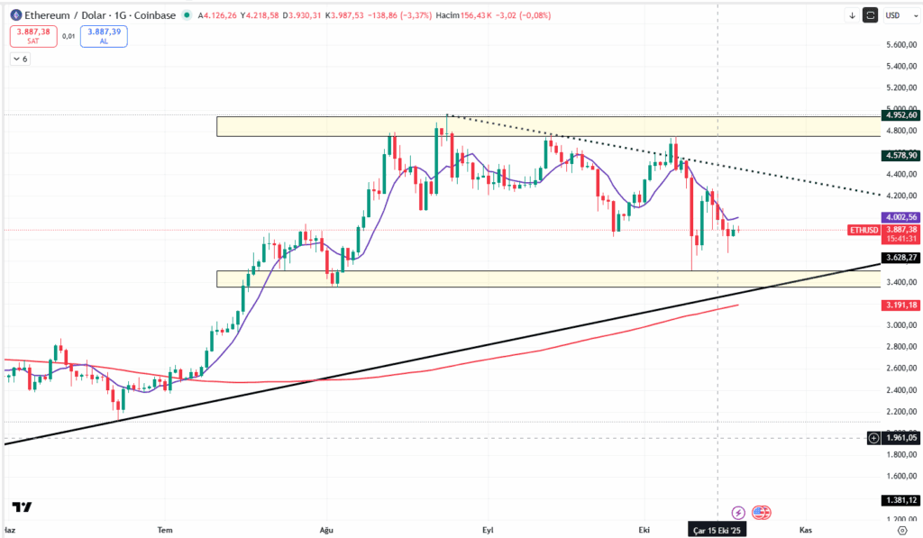 Düşen trendin altında devam eden haftada 8 günlüğe kadar gelen tepkiden sonra halen altında bulunuyoruz. 4002’den geçen 8 günlük ortalamanın üzerine attığımızda en azından aşağıda görünen bandın üzerine doğru bir hareket beklenebilir.(4400/4800) En ciddi destekler ise 3500/3200(200 günlük ortalama) seviyeleri.