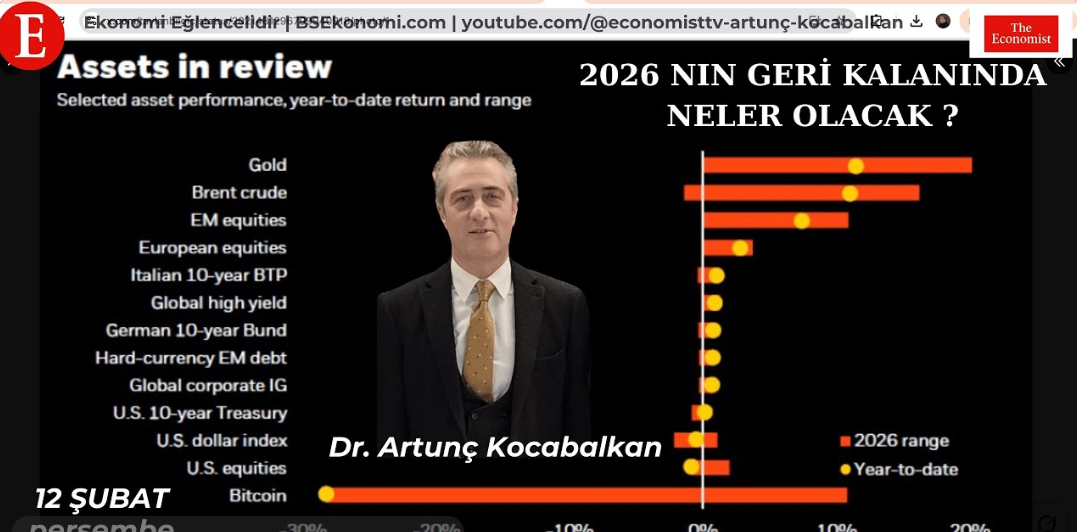 Küresel finans piyasalarında kartlar yeniden karılırken, Dr. Artunç Kocabalkan bugün saat 09:30’da Ekonomist TV’de çok kritik bir yayınla izleyici karşısına çıkıyor. Yılbaşından bu yana altın ve Brent petrolün çift haneli getirilerle domine ettiği, Bitcoin’in ise %25’i aşan değer kaybıyla sarsıldığı bir tabloda; “Assets in Review” verileri üzerinden geleceğe dair projeksiyonlar yapılacak. Gelişmekte olan piyasa hisse senetlerinin (EM equities) pozitif ayrışması ve ABD 10 yıllık tahvillerindeki sıkışmanın yatırımcıya ne söylediği, bu sabahki yayının ana gündem maddelerini oluşturuyor.