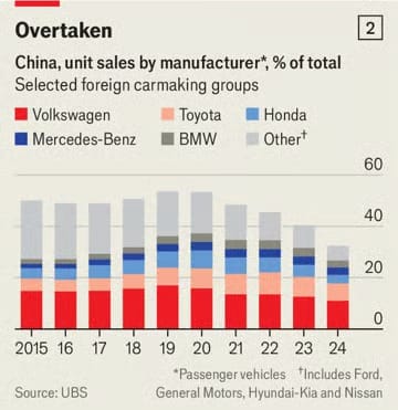 Yabancı firmalar daha da zor durumda. Eskiden pazara hâkimken, yerli markaların payı 2020’de %34’ten 2025’in ilk dört ayında %69’a çıktı. UBS’ten Patrick Hummel’in dediği gibi, “yerlilerle fiyat savaşında rekabet edemezler.”