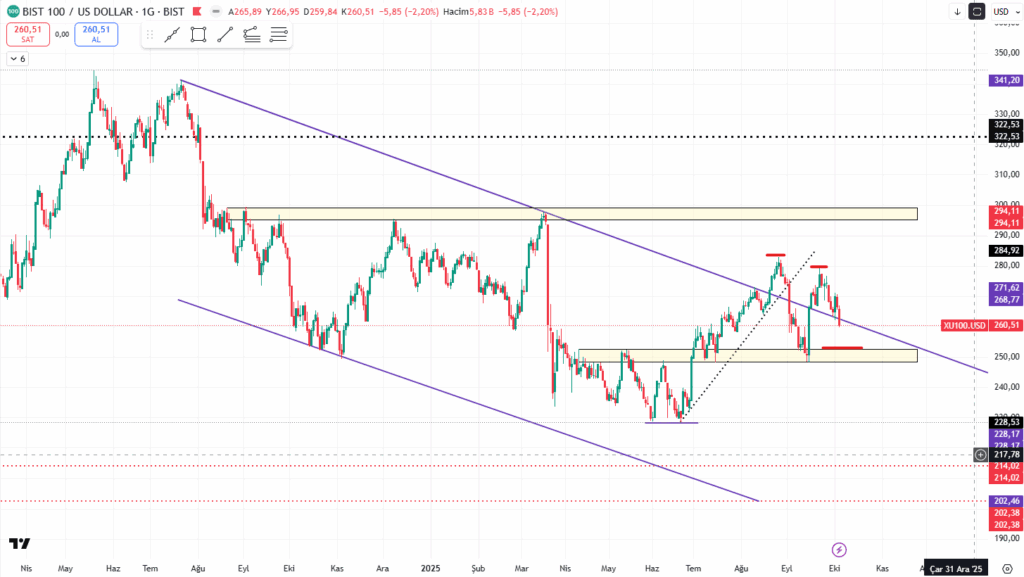 Dolar bazlıda geçen hafta belirttiğimiz 50 günlük ortalama altına sarkınca fiyat epey gevşedi ve haftayı 260.51$’dan kapattık. Zayıflığın devamı durumunda 252/250$lara kadar geri çekilme görülebilir.