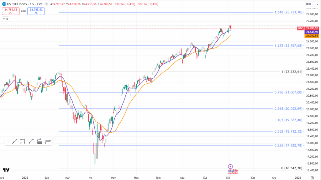 Temel durum, enflasyon, tarım dışı istihdam, FED vs hepsi fiyatlamaya zaten girdiği için hiçbirini dinlemiyor ve 24647/24360 üzerinde 25733 hedefimize doğru ilerliyoruz.