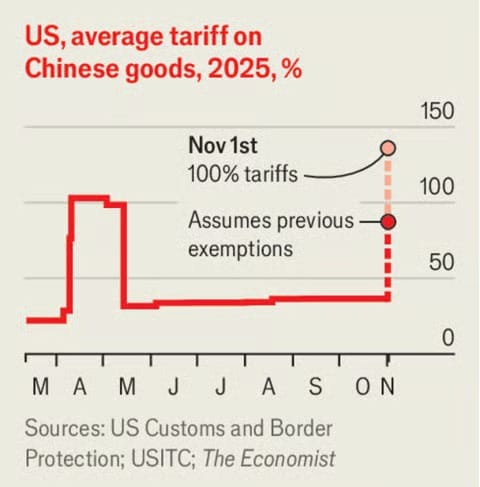 Son yaşanan kopuş, Amerika ve Çin’in birbirlerini hâlâ doğru anlamaktan çok uzak olduklarını da gösteriyor. Amerikan Hazine Bakanı Scott Bessent, Çin ekonomisinin “depresyonda” olduğunu söylüyor. Çin’in büyümesi gerçekten zayıf seyrediyor, fakat bunun nedeni gümrük tarifeleri değil. Eylül ayına kadarki 12 aylık dönemde Çin’in mal ihracatı %8 arttı; Amerika’ya yapılan satışların yerini diğer pazarlara yapılan satışlar aldı. Beyaz Saray, Çin’in yeni kuralları liderler arasındaki planlı Güney Kore görüşmesinden sadece haftalar önce devreye sokmuş olmasına öfkeli. Pekin ise Amerika’nın ihracat kontrollerini değiştirerek binlerce Çinli firmayı kara listeye alma riski doğurmak suretiyle ateşkesi ilk bozan taraf olduğunu savunuyor.