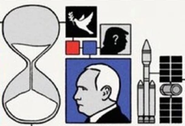 2024 Yılı Ekonomist Kapağında yer alan bölümde Trump’ın kulağının üzerindeki soru işareti (ki kulağından yaralanmıştı) hala hafızalardayken, fotosunun üzerindeki güvercin kendisini barış elçisi ilan etmesinin öncü haberiydi. İlginç olan şu ki kapakta Trump tam da Putin’in üzerinde konuşlanıyor. Alaska’da el sıkışan iki lider bu barış güvercini fotografını daha anlamlı hale getiriyor. Ancak aşağıda detaylarını bulacağınız görüşmeler konunun sadece Ukrayna için barış olmadığını gözler önüne seriyor.