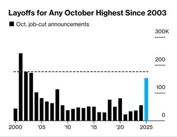 • ABD’de özel sektör işten çıkarmaları Ekim ayında 153.074 kişiye ulaştı — bu, 2003’ten bu yana kaydedilen en yüksek Ekim seviyesi.