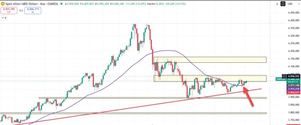 • Direnç bandı 4.100–4.200 dolar aralığında; bu seviyenin aşılması trendin yönünü belirleyecek.