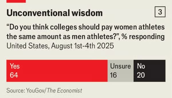 Bir diğer soru da, federal fon alan üniversitelerde cinsiyet eşitliğini garanti altına alan Amerika’nın Title IX yasasının bu yeni düzeni nasıl şekillendireceği. Eğer mahkemeler, erkek ve kadın sporları arasında gelir paylaşımının eşit yapılması gerekmediğine karar verirse, piyasa güçleri çok büyük uçurumlar yaratacak. (bkz. grafik 3)