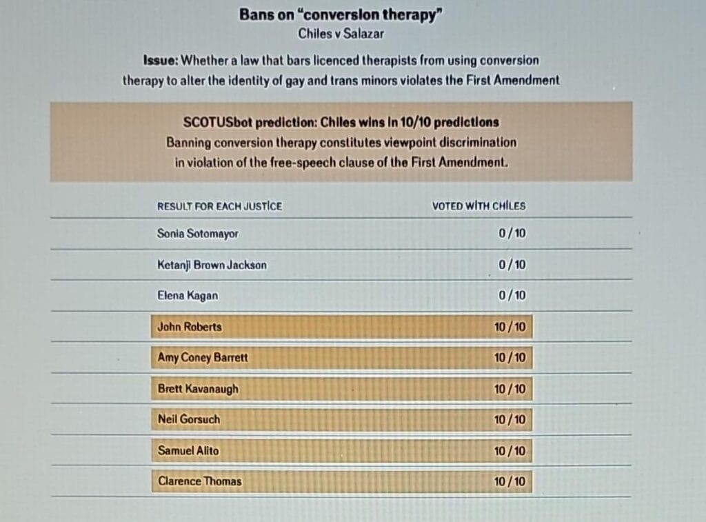 The Economist’in davaların sonuçlarını öngörmek üzere eğittiği yapay zekâ aracı SCOTUSbot, Trump’ın gündeminin ötesindeki muhafazakâr davalar için yine güçlü bir yıl öngörüyor (tablolara bakınız). Ancak SCOTUSbot, polislerin acil bir durumdan şüphelendiklerinde arama izni olmadan evlere girme yetkisini genişletip genişletmeyeceği konusunda kararsız kalıyor: On simülasyonda beş sonuç bir tarafa, beş sonuç ise diğer tarafa çıktı.