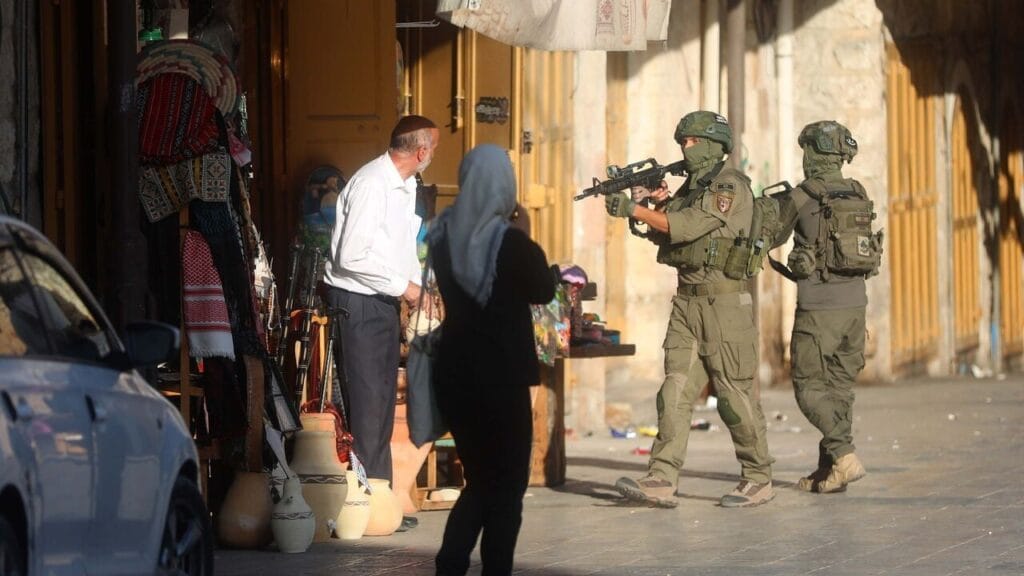 Üstte: Hebron’da İsrail güvenlik güçleri. Altta: 14 Ağustos’ta İsrail Maliye Bakanı Bezalel Smotrich, E1 yerleşim projesinde 3.000’den fazla konutu onaylama planlarını duyurmak için bir basın toplantısı düzenledi.