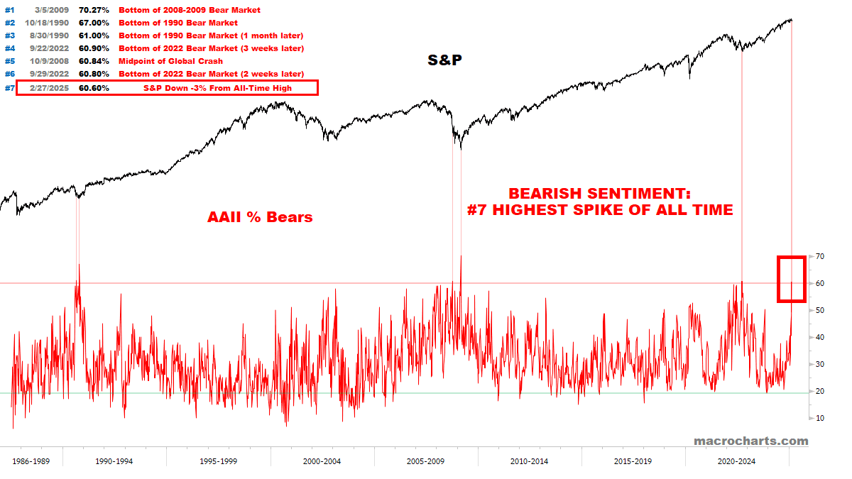 Buna karşılık, bu tür yüksek seviyelerin geçmişte genellikle piyasa dipleri ile çakıştığı belirtilmiş. Önceki rekor seviyeler, büyük ayı piyasalarının sonuna denk gelmiş: 2008-2009 finansal krizi, 1990 ayı piyasası ve 2022 ayı piyasasının dibi gibi. Ancak bu sefer, S&P 500 sadece tüm zamanların zirvesinden %3 aşağıda olmasına rağmen yatırımcı duyarlılığının bu kadar olumsuz olması dikkat çekici bir durum olarak öne çıkıyor.