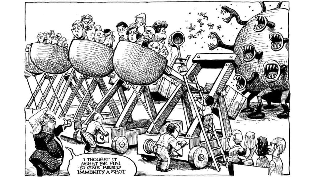 Her Pazartesi KAL’ın bir karikatürünü yeniden yayımlıyoruz. Ekim 2020 tarihli bu karikatür, Trump’ın bazen covid-19’u ciddiye almak istemediğini ima ediyor. Ancak Trump, milyonlarca hayat kurtaran ve pandemiyi kontrol altına alan mRNA aşılarını geliştiren Warp Speed Operasyonu’nu başlatmıştı. Şimdi ise Sağlık Bakanı Robert F. Kennedy Jr., bu teknolojiye yönelik fonlamayı iptal etti ve dünyayı tehlikeye attı.