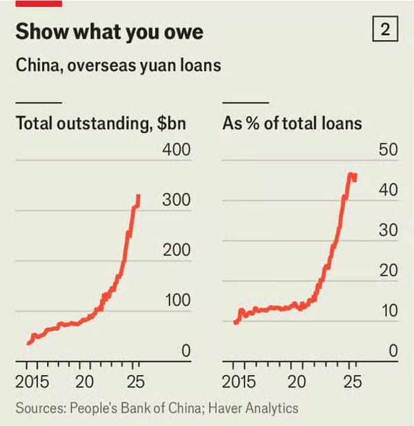 Çin’in bir sonraki temkinli adımı, iç piyasadaki sermaye piyasalarını dostlarına açmak. Temmuz’da Macaristan yaklaşık 5 milyar yuan tutarında “panda tahvili” çıkardı—şimdiye kadarki en büyük tek egemen ihraç. 8 Eylülde Financial Times, Rus enerji şirketlerine yuan cinsinden borçlanma izni verildiğini yazdı. Kenya yakında Çin’e olan dolar borçlarını yuana çevirebilir. Brezilya yeni bir ihraç üzerinde düşünüyor, Pakistanlı yetkililer ise potansiyel alacaklılarla görüşmek için Pekin’de bulunuyor.