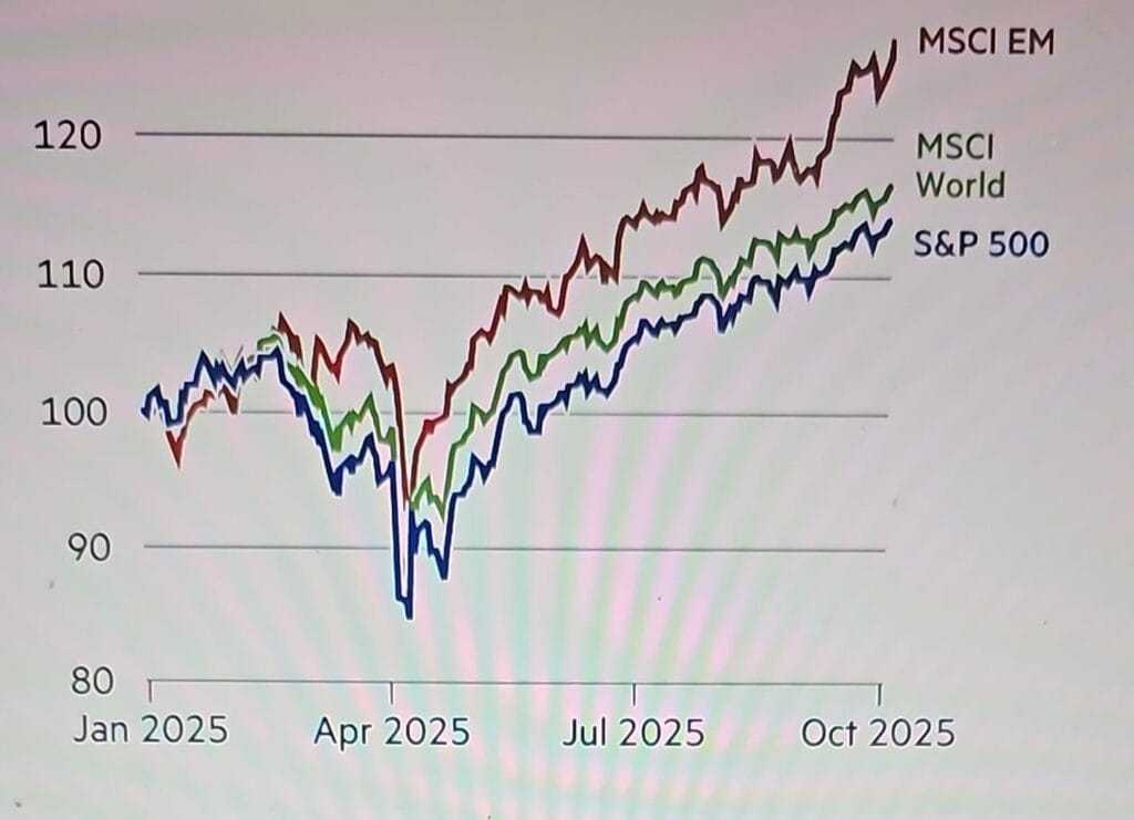 Gelişen piyasa hisselerindeki bu ralli, gelişmiş ekonomilerin kazançlarını açık ara geride bıraktı. MSCI’nin gelişmiş piyasa endeksi bu yıl yüzde 17’den az yükselirken, gelişen piyasaların dönüşü dikkat çekti. Bu, 2010–2024 arasındaki dönemle çarpıcı bir tezat oluşturuyor. O dönemde gelişen piyasalar, ABD’nin tarihi boğa koşusunun çok gerisinde kalmış, MSCI endeksi 15 yılda yalnızca yüzde 9 artış göstermişti.