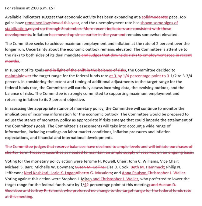 Stephen Miran ve Christopher Waller, toplantıda 25 baz puanlık faiz indirimi yönünde oy kullandı. Bu durum, kurul içinde gevşeme sürecinin zamanlamasına ilişkin sınırlı da olsa bir görüş ayrışmasının sürdüğüne işaret ediyor.