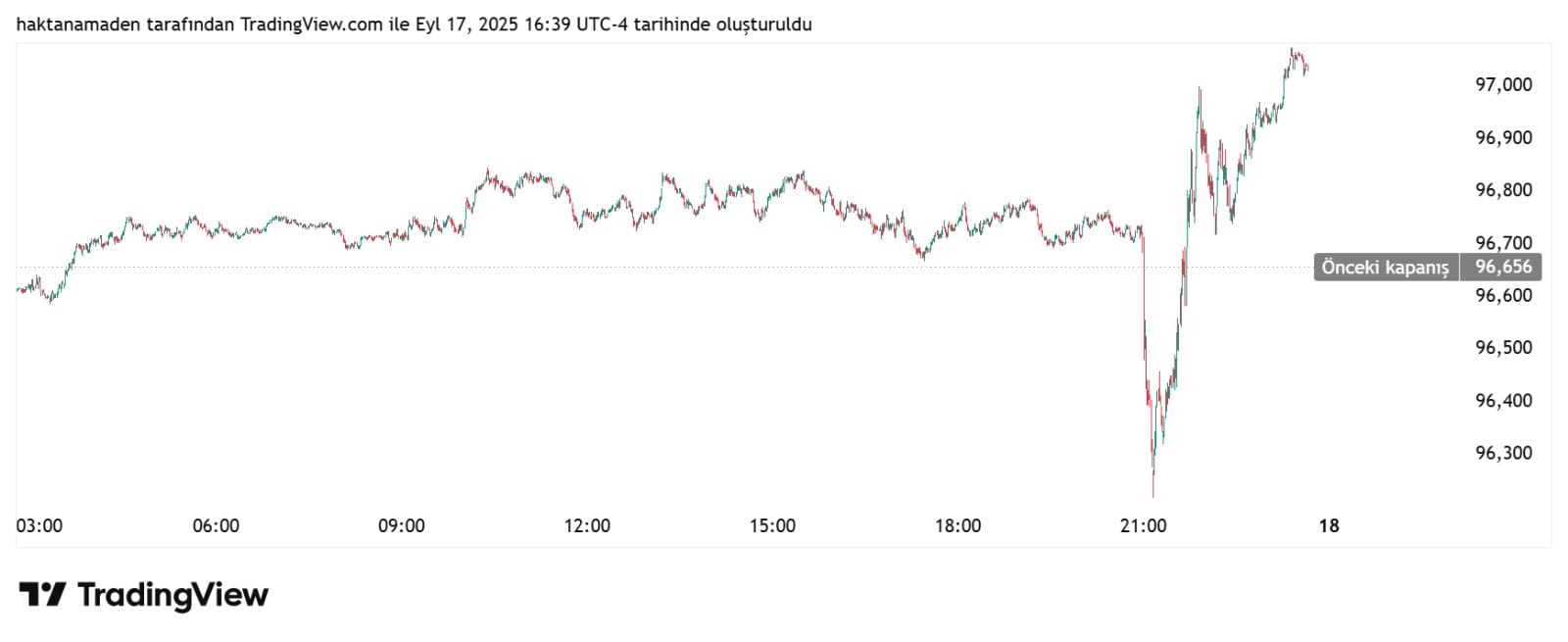 • Fed’in 25 baz puanlık faiz indirimi kararının ardından Dolar Endeksi (DXY) sert dalgalanma yaşadı, 96,300 seviyesine kadar geriledikten sonra hızla toparlanarak 97,000 üzerine çıktı.