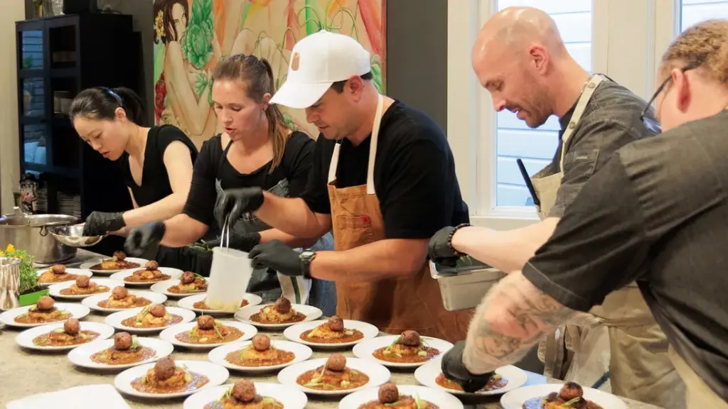 San Francisco’nun Mission Bölgesi’nde bulunan Green Americana adlı pop-up restoranda yemek aralarında şefler Philip Saneski ve Emily Hopkins, hazırladıkları yemekleri anlatıyor. Masada yapılan açıklamaların bir kısmı tanıdık: Domuz köftesi şehir sınırları içinden tedarik edilmiş; “chicken-fried steak” –Güney mutfağını sevenlerin bildiği üzere– tavuk içermiyor (ismi pişirme yönteminden geliyor); espresso martini ise Fransa’nın Cognac bölgesinden gelen alkolle yapılmış.