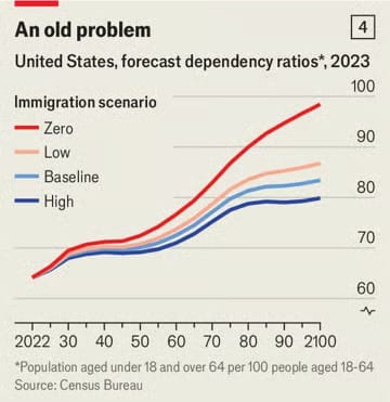 Daha küçük bir nüfus ve daha yavaş büyüyen bir işgücü, Amerika’nın ekonomisinin boyutunu küçültecek. Bu büyük bir fark yaratır: Borçların ödenmesi zorlaşacak; büyük bir ordunun sürdürülmesi daha güç olacak. Ancak daha da kaygı verici olan, “Sıfır Göç Amerikası”nın, verimlilik artışını ve dolayısıyla kişi başına düşen GSYİH’yı düşürerek yerli ya da yabancı doğumlu tüm sakinlerini daha da yoksullaştıracak olmasıdır.