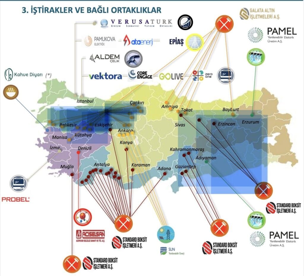 - Investco’nun en büyük iştiraki Verusa Holding, Türkiye’nin boksit madenlerinin çoğu, çok sayıda altın sahası, enerji ve çelik yatırımlarıyla kritik sektörlerde güçlü varlıklara sahip.