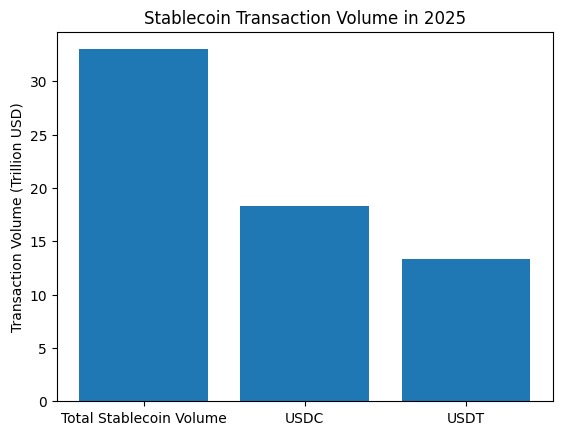 Stablecoin işlem hacmi 2025’te yüzde 72 artarak 33 trilyon dolara ulaştı; hacim, birçok geleneksel ödeme ağını yakaladı. USDC 18,3 trilyon dolarlık işlem hacmiyle liderliğe yükselirken, USDT 13,3 trilyon dolarla ikinci…