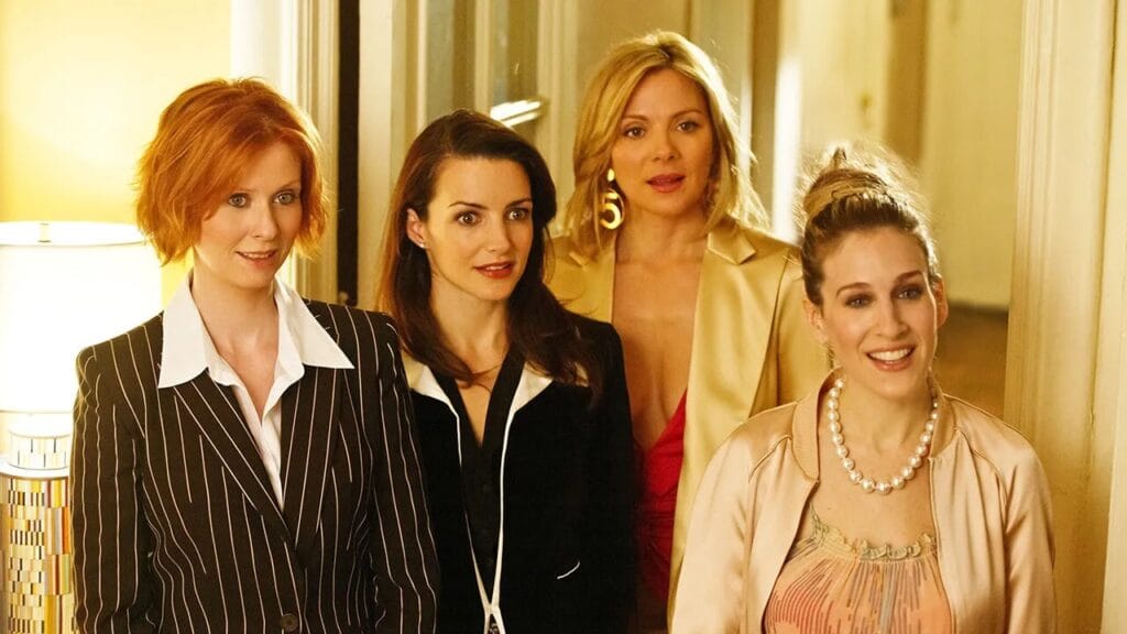 Bu karakterler—dört ateşli, bekar kadın—1998’de ekrana taşındı. Miranda (Cynthia Nixon), stresli avukat; Charlotte (Kristin Davis), kusursuz WASP; Samantha (Kim Cattrall), cinselliğiyle öne çıkan halkla ilişkiler uzmanı. Ama merkezin adı Carrie’ydi (Sarah Jessica Parker): gazeteci, hayatın tadını çıkaran ve berbat kelime oyunlarına düşkün bir kadın. Birlikte kürtajlardan fetişlere, doğurganlıktan ilişkilerin en kırılgan yanlarına kadar televizyonun daha önce işlemeye cesaret etmediği konuları gündeme getirdiler.