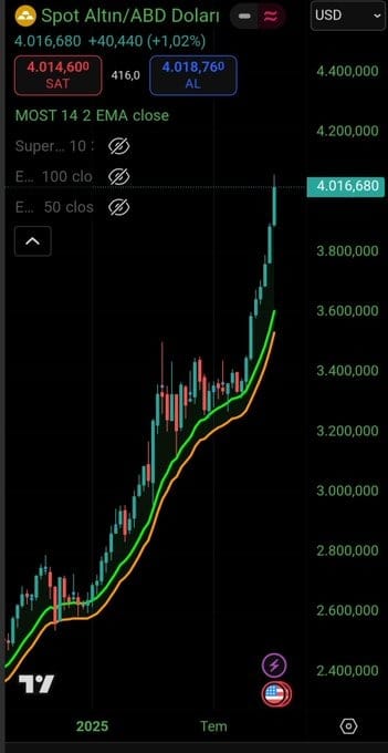 Altın sadece yükselmiyor – paradigma değiştiriyor. 4.000 dolar üstü kapanış, küresel para sistemine güvensizliğin ve rezerv savaşlarının sertleştiğinin göstergesi. Bu görüntü, klasik bir ralli değil; finansal koruma refleksi.