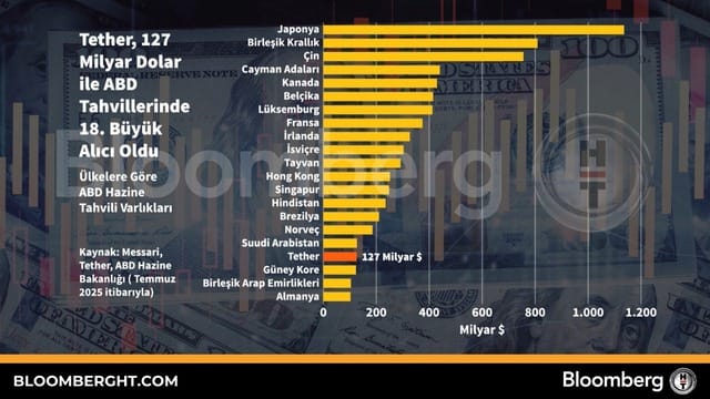 Stablecoin piyasasının en büyük oyuncularından Tether, ABD Hazine tahvillerindeki varlığını 127 milyar dolara çıkardı. Bu büyüklük Tether’i, resmi rezerv sahipleriyle kıyaslandığında dünyanın 18. büyük ABD tahvili alıcısı konumuna taşıdı.