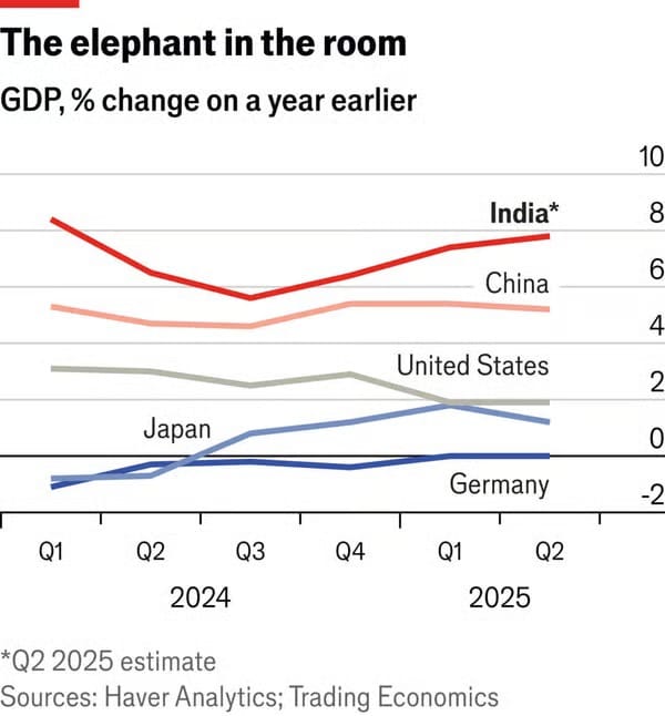 Hindistan hükümeti uzun süredir ülkenin hızlı ekonomik büyümesinin keyfini sürüyordu. Dünyanın en hızlı büyüyen büyük ekonomisi, nisan-haziran çeyreğinde yıllık bazda %7,4 genişledi. Ancak endişeler giderek artıyor. Amerika’nın Hindistan’dan yapılan ihracata %50 gümrük vergisi uygulaması planlandığı gibi 27 Ağustos’ta yürürlüğe girerse, ekonomistlere göre büyüme hızını 0,8 puan aşağı çekebilir.