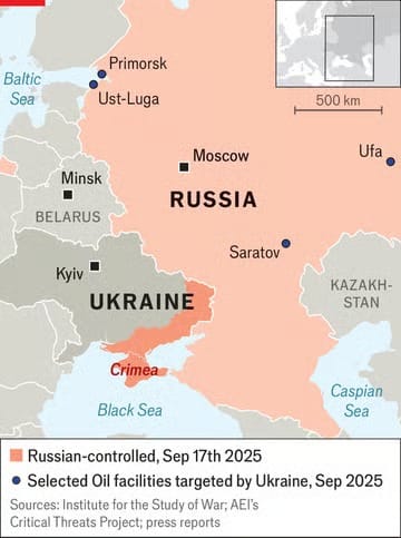 Amerikan düşünce kuruluşu Savaş Araştırmaları Enstitüsü’ne (The Institute for the Study of War) göre, Ukrayna’nın stratejik hava harekâtı “Rusya’nın savaşını finanse etme kapasitesi üzerinde katlanarak artan etkiler yaratıyor.” Aynı derecede önemli bir gelişme de 12 Eylül’de Rusya’nın Baltık Denizi’ndeki en büyük petrol terminali olan Primorsk’a düzenlenen büyük dron saldırısıydı. Dört gün sonra Reuters, devlet kontrolündeki petrol firması Transneft’in, hasarın petrol üreticilerini üretimi kısmak zorunda bırakmış olabileceği yönünde uyarıda bulunduğunu bildirdi.