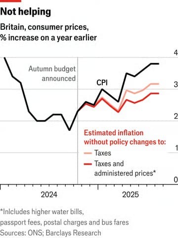 Yükselen enerji ve gıda maliyetleri bu artışın bir nedeni olsa da, izlenen ekonomi politikaları da etkili oldu. Barclays Bankası’nın hesaplamalarına göre vergi artışları enflasyona 0,6 puan, düzenlemelere bağlı fiyat değişimleri—örneğin Nisan’da su faturalarındaki %26’lık artış—0,3 puan ekledi.