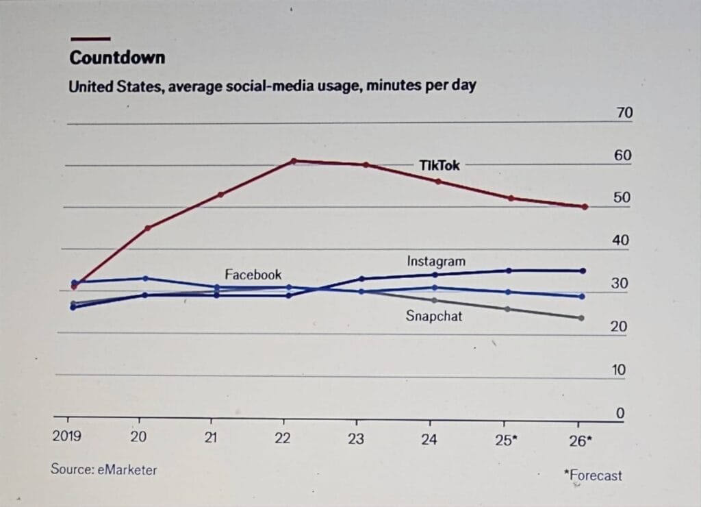 Bu erişim TikTok’u ticari bir güç merkezine dönüştürüyor. Analistler, ağırlıklı olarak reklam ve e-ticaretten elde edilen Amerikan gelirlerinin bu yıl 20 milyar dolara ulaşacağını tahmin ediyor. Araştırma şirketi eMarketer’a göre, önümüzdeki yıl Amerika’daki reklam satışları neredeyse dörtte bir oranında büyüyecek. Bir yasak ihtimali gündemde olmasına rağmen, başka bir araştırma şirketi olan Sensor Tower’a göre, TikTok bu yıl Amerika’da en çok indirilen uygulamalardan biri olmaya devam etti. Ancak çatlaklar da oluşmaya başlıyor. Amerikalıların platformda geçirdiği süre düşüyor (bkz. grafik 2); bunun nedeni Instagram ve YouTube gibi rakiplerin TikTok’un özelliklerini taklit etmesi ve birçok kullanıcının (ya da ebeveynlerinin) telefonda geçirilen zamanı sınırlamaya çalışması.