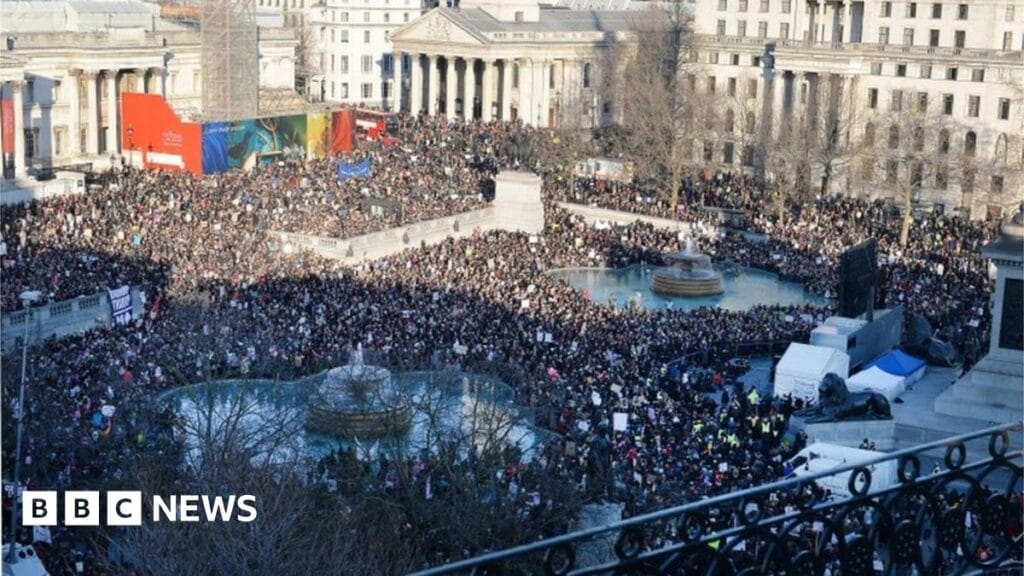 Trump, İngiltere’ye gelişinde Kral Charles tarafından karşılandı ve Windsor’da ihtişamlı bir askeri geçit töreniyle ağırlandı. Ancak aynı gün Londra’da Stop Trump Koalisyonu öncülüğünde 5.000 kişinin katıldığı büyük bir protesto düzenlendi. Kadın örgütleri, Filistin yanlısı gruplar ve insan hakları kuruluşlarının desteklediği eylemde “Trump Hoş Geldiniz Değil” “Trump Evrimde Geri Adım” pankartlarını taşındı.