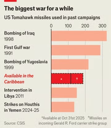 Bu yüzden Trump’ın sadece tehdit etmekle yetinmeyip güç kullanması gerekebilir. O, Amerikan birlikleri açısından düşük riskli hızlı sürpriz saldırıları tercih ediyor; tıpkı Haziran’da İran’ın nükleer tesislerinin bombalanmasında olduğu gibi. Venezuela söz konusu olduğunda ise Trump hamlelerini basınç yaratmak için açık ediyor gibi görünüyor. Sızan bilgiler, ilk olarak uzak bölgeleri —muhtemelen uyuşturucu ağlarıyla bağlantılı havaalanlarını— hedef alabileceğini öne sürüyor. Eğer rejime karşı sürdürülen bir hava kampanyasına dönüşürse, hava savunmalarının da imha edilmesi gerekecektir.