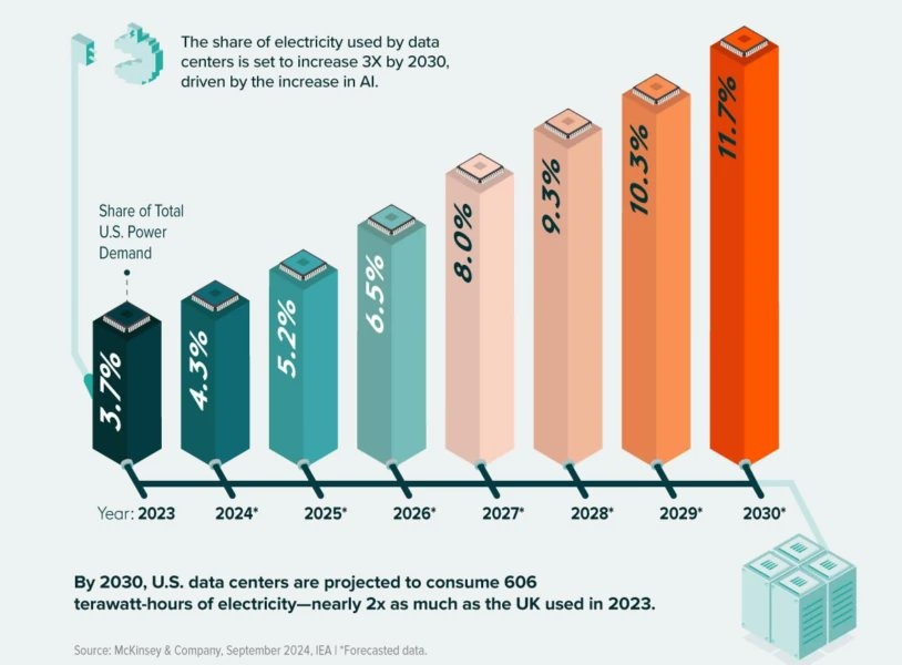 Veriler, sorunun boyutunu net biçimde ortaya koyuyor. ABD’de veri merkezlerinin toplam elektrik talebi içindeki payı son yıllarda hızla artarken, mevcut projeksiyonlara göre bu tüketim 2030’a kadar yaklaşık üç katına çıkacak. Bu artış, bazı eyaletlerde şebeke kapasitesi, arz güvenliği ve fiyat istikrarı açısından ciddi baskılar yaratıyor.