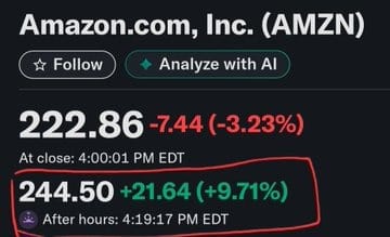 Amazon (AMZN) ise tam tersi yönde hareket etti. E-ticaret devinin gelirleri %12, bulut bölümü AWS’nin satışları %9 arttı. Reklam gelirlerindeki %27’lik artış da tabloyu destekledi. Sonuç: After-hours işlemlerinde hisse %9,71 artarak 244,50 dolara yükseldi.