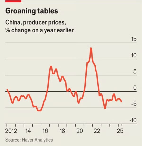 Son yıllarda imalat yatırımları –özellikle yüksek teknoloji alanındakiler– Çin’in uzun süren emlak krizine rağmen zorluklarla mücadele eden ekonomisinin parlak noktalarından biri olmuştu. Ancak sanayi ürün fiyatlarındaki ve kârlılıktaki hızlı düşüşler, bu sermaye harcamalarının sürdürülebilirliği konusunda şüphe yaratıyor. Elektrikli araçlar, lityum iyon piller ve güneş panelleri gibi sektörler, emlak sektörünün yarattığı büyük boşluğu dolduracak yeni büyüme motorları olarak görülüyordu. Ancak şimdi bu sektörler de deflasyon motorlarına dönüşmüş durumda.